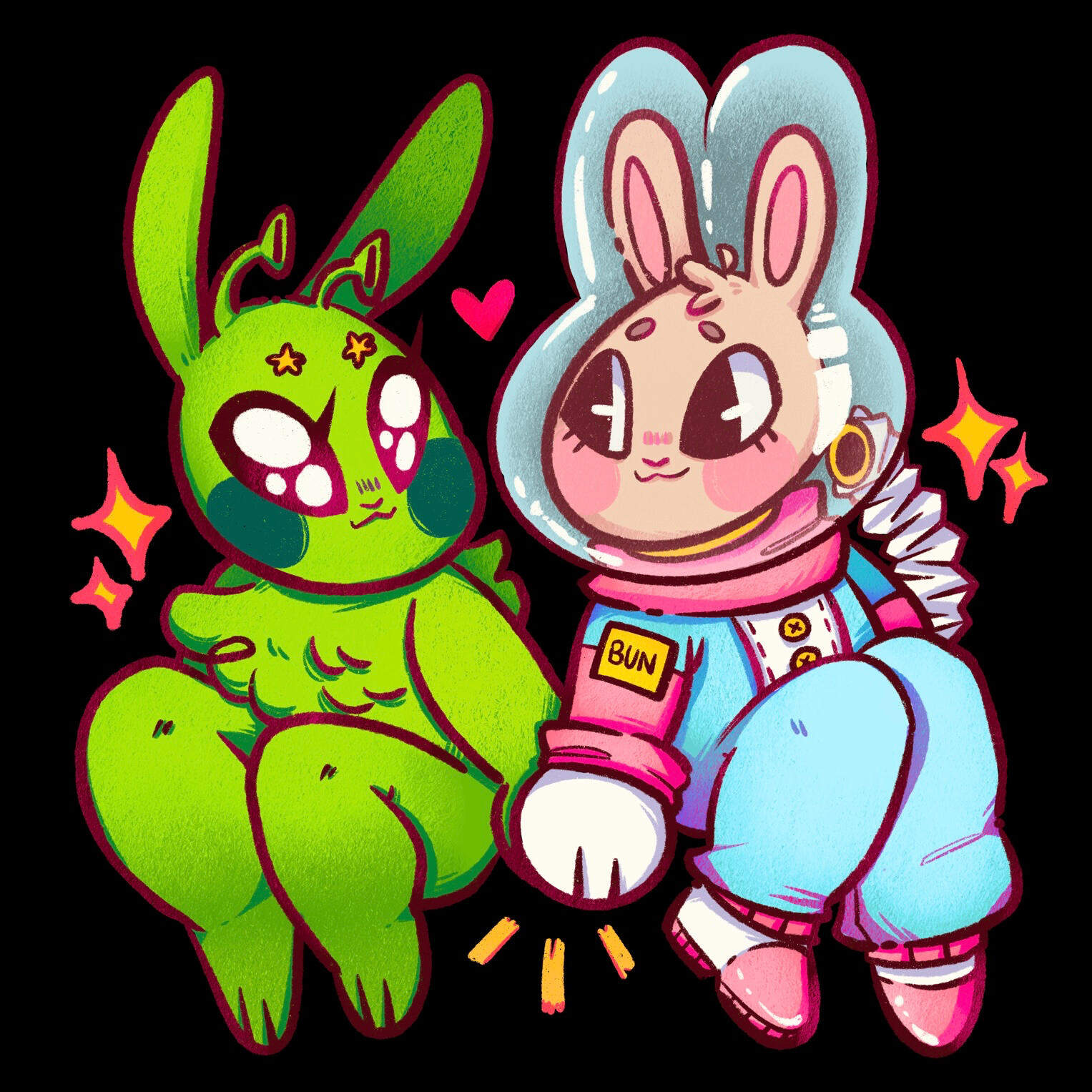 hi there! we’re IVAN & MICHAEL, affectionately known as THE BUNS. we’re a couple of silly rabbits who love to make art of BUNNIES…et cetera.our art focuses on the cute and whimsical in a fun, illustrative style, with lots of texture! we do fan art of our favorite media, and lots of original work as well. thanks for checking us out!